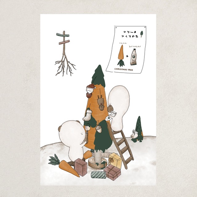【 クリスマス限定 】 にんじんツリーポストカードです サンタさんとトナカイくんの おうち って どこにあるのかな? ぼくたちが おうち つくってあげるね ! てづくりのにんじんツリー ここち どうかな? くまさん、あひるさんの想いを込め、 まるで1枚の絵本のような デザインを描きました 。 お部屋のインテリアにしたり コレクションしてお楽しみください。 裏面は無地なので、メッセージを書いて プレゼントに添えたりもできます。 ーーーーー ■ 商品内容 ■ ・ポストカード 1枚 ■ サイズ ■ ・ハガキサイズ 約 : 縦10cm × 横14.8cm ■ 注意事項 ■ ・裏面は無地です。郵便番号の枠などはありません。 ・水に濡れるとインクがにじみますのでお気を付けください。 ・ご不明な点がある方は、必ず購入前に メッセージにてご連絡下さい。